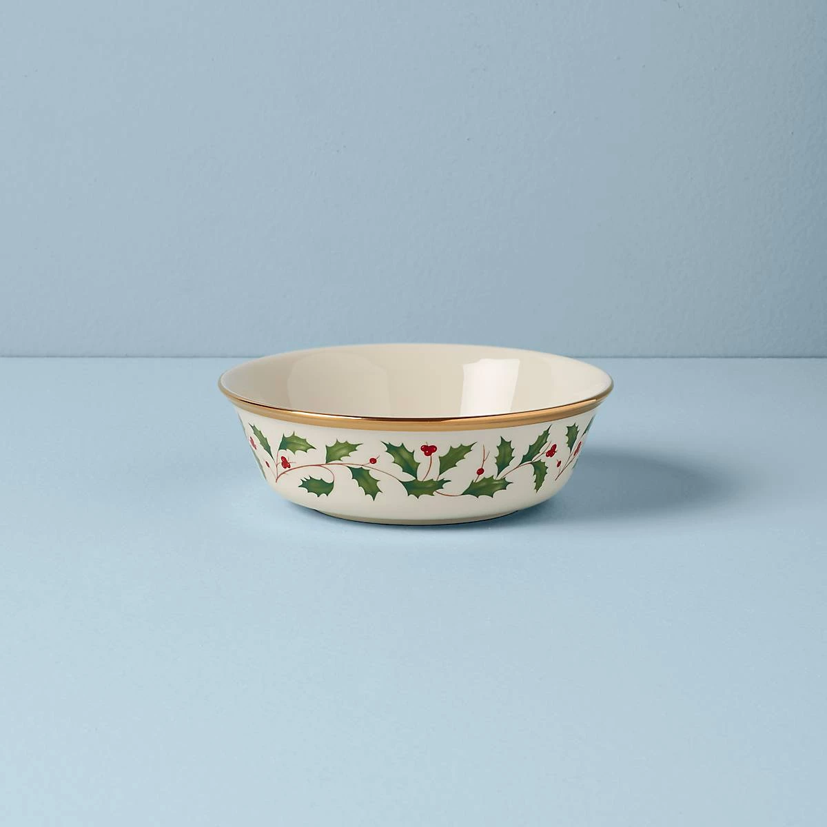 Part of the time-honored Lenox Holiday Dinnerware Collection, our holly and berry motif adorns the surface of this Holiday All-Purpose Bowl. Crafted from porcelain with a rich, 24-karat gold trim for an opulent, holiday-themed tableware addition.
